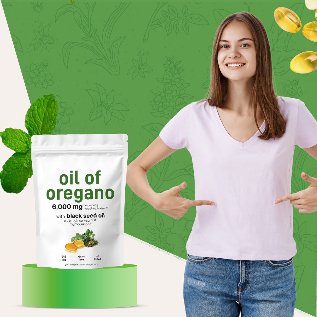 Nuestro complejo de aceite de orégano con semilla negra ayuda a limpiar tu organismo del crecimiento excesivo de la cándida, brindando alivio digestivo, menos hinchazón y mayor vitalidad.